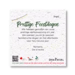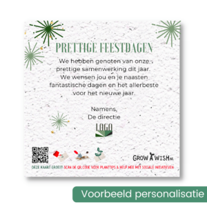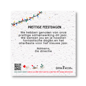 Hoe leuk het ook is om een geschreven wens te krijgen, sommige wensen kan je eenmaal niet laten uitgroeien op papier. Daarom besteden we 5% van de netto omzet aan sociale initiatieven omtrent eenzaamheid en biodiversiteit. Zo geef jij niet alleen je medewerkers een fleurige kerstgroet maar draag je ook een warm hart toe aan je mede mens. Afgelopen jaar hebben we de Soeptuin opgezet in samenwerking met de DagbesTheeding. Een maandelijkse avond waar we mensen die vaak alleen moeten eten uitnodigen om soep te komen eten, gekookt door de deelnemers van de dagbestheeding. Het is iedere maand een klein feestje!