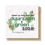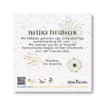 Onze groeikaarten zijn gemaakt van groeipapier uit Zuid-Afrika. In de papier fabriek krijgen mensen uit de lokale bevolking een leefbaar loon. Ze verzamelen oud papier uit de hele omgeving en maken hier nieuw, gerecycled groeipapier van.
